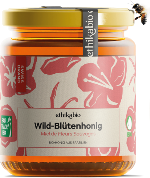 Miel de qualité de production contrôlée, certifié par le label bourgeon bio suisse de qualité et commerce équitable.